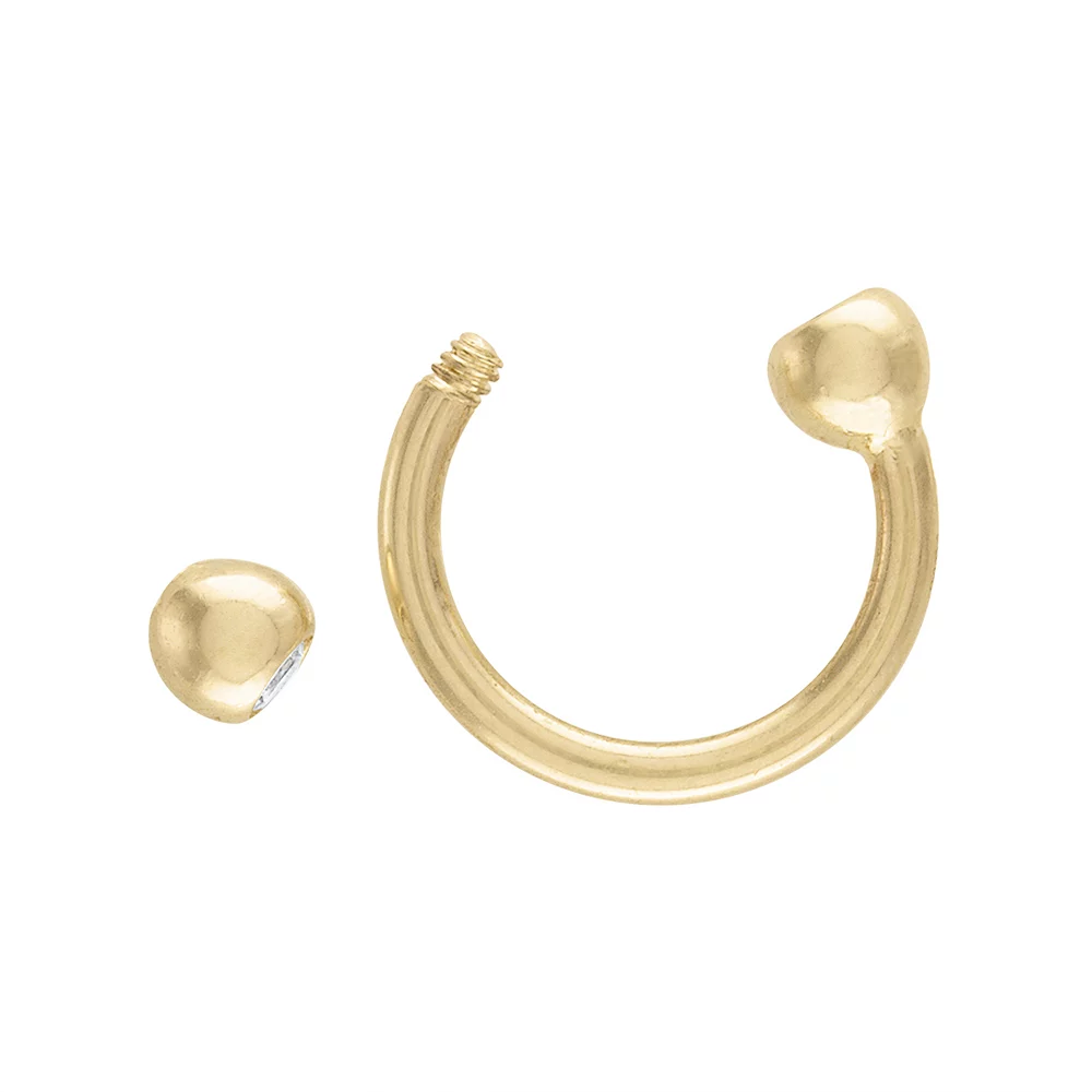 Turn heads with this 10k gold cubic zirconia barbell nose ring.