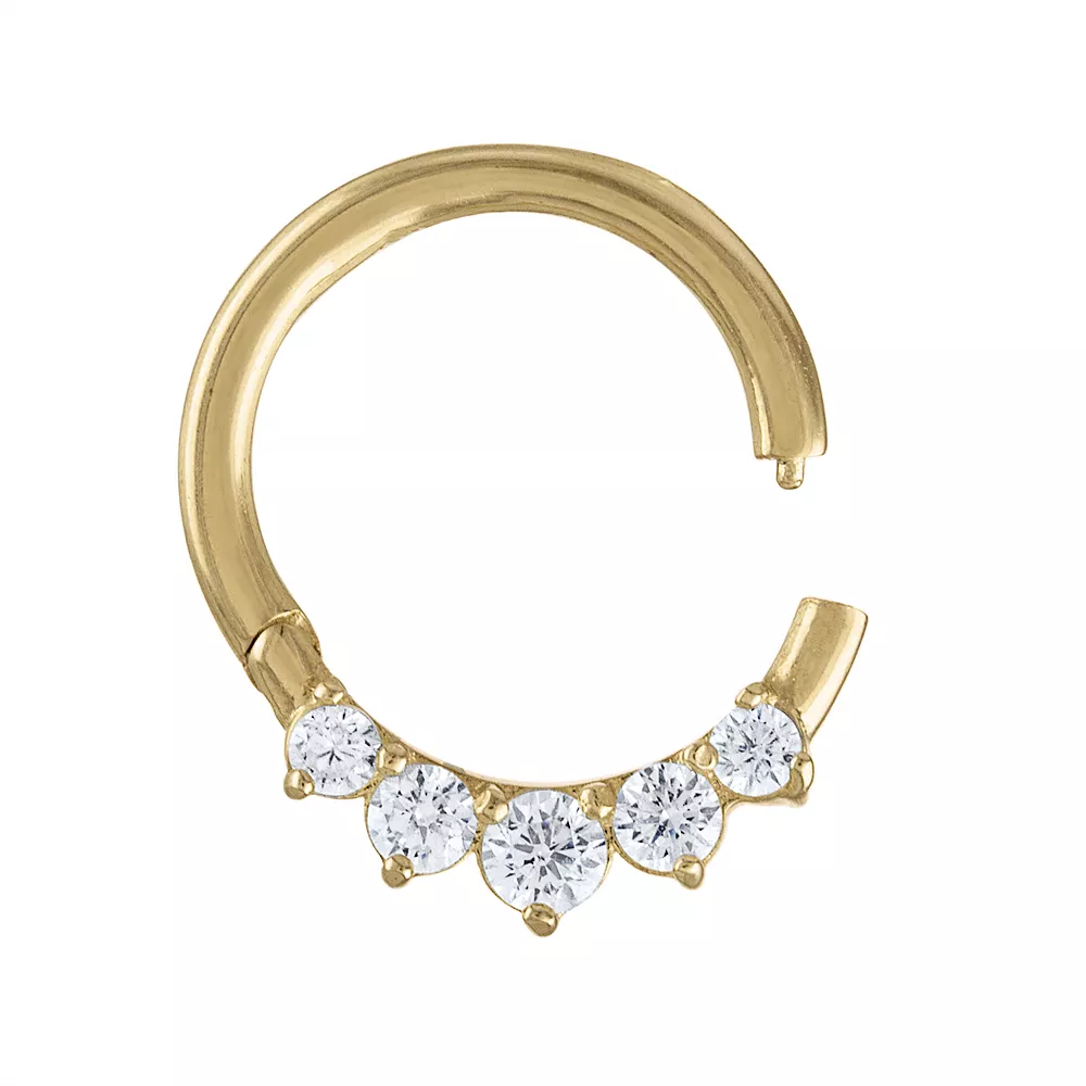 Turn heads with this 10k gold cubic zirconia clicker nose ring.