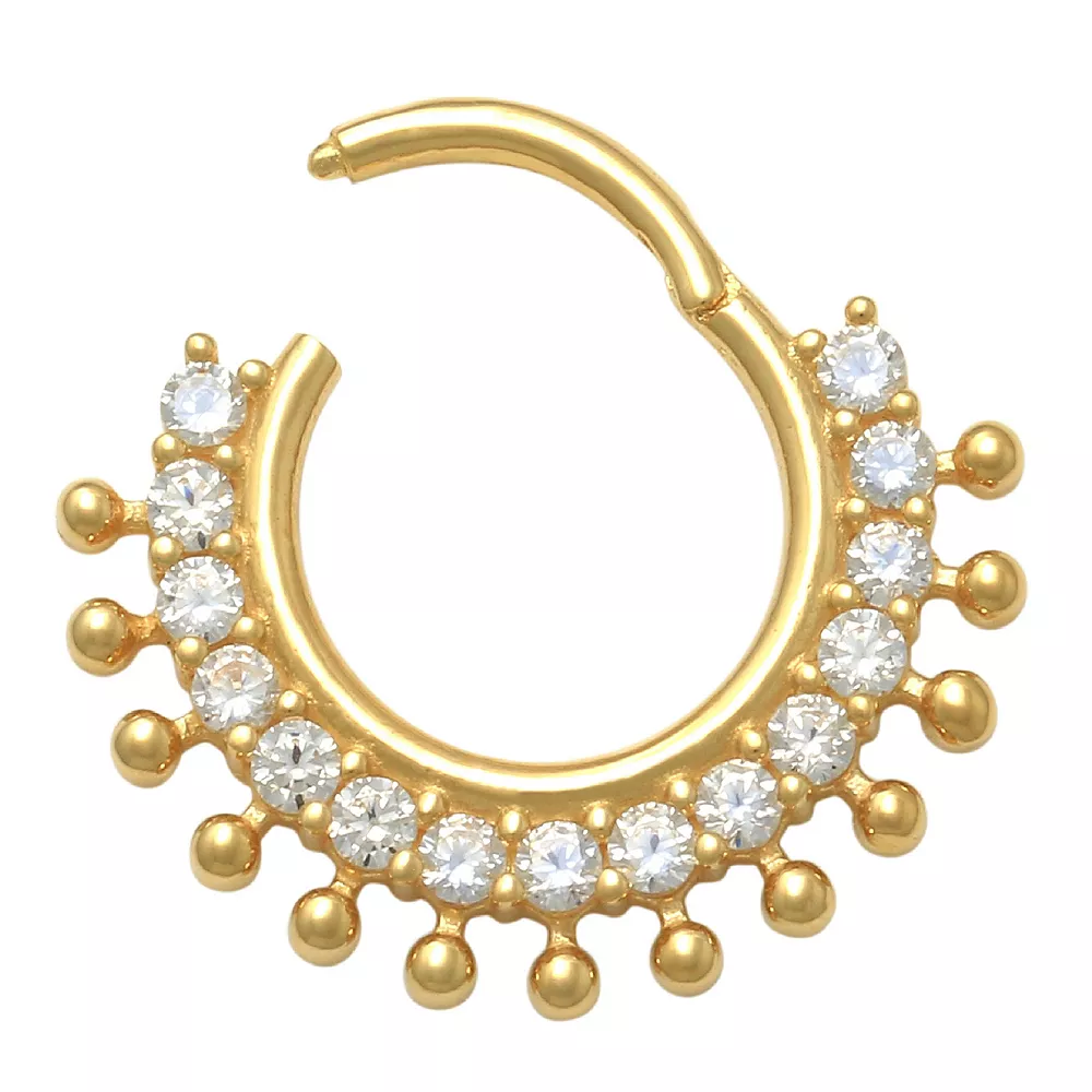 Add this gorgeous 10K Gold Septum Clicker Nose Ring to your jewelry collection.