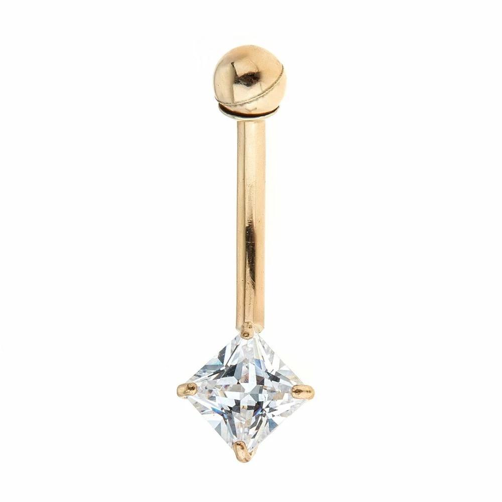 This 10k Gold & Square Cubic Zirconia Belly Ring is simple, stylish, and one-of-a-kind.