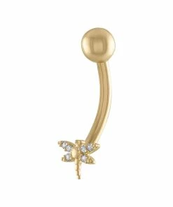 Shimmering with cubic zirconia accents, this butterfly dangle belly ring enhances your style.