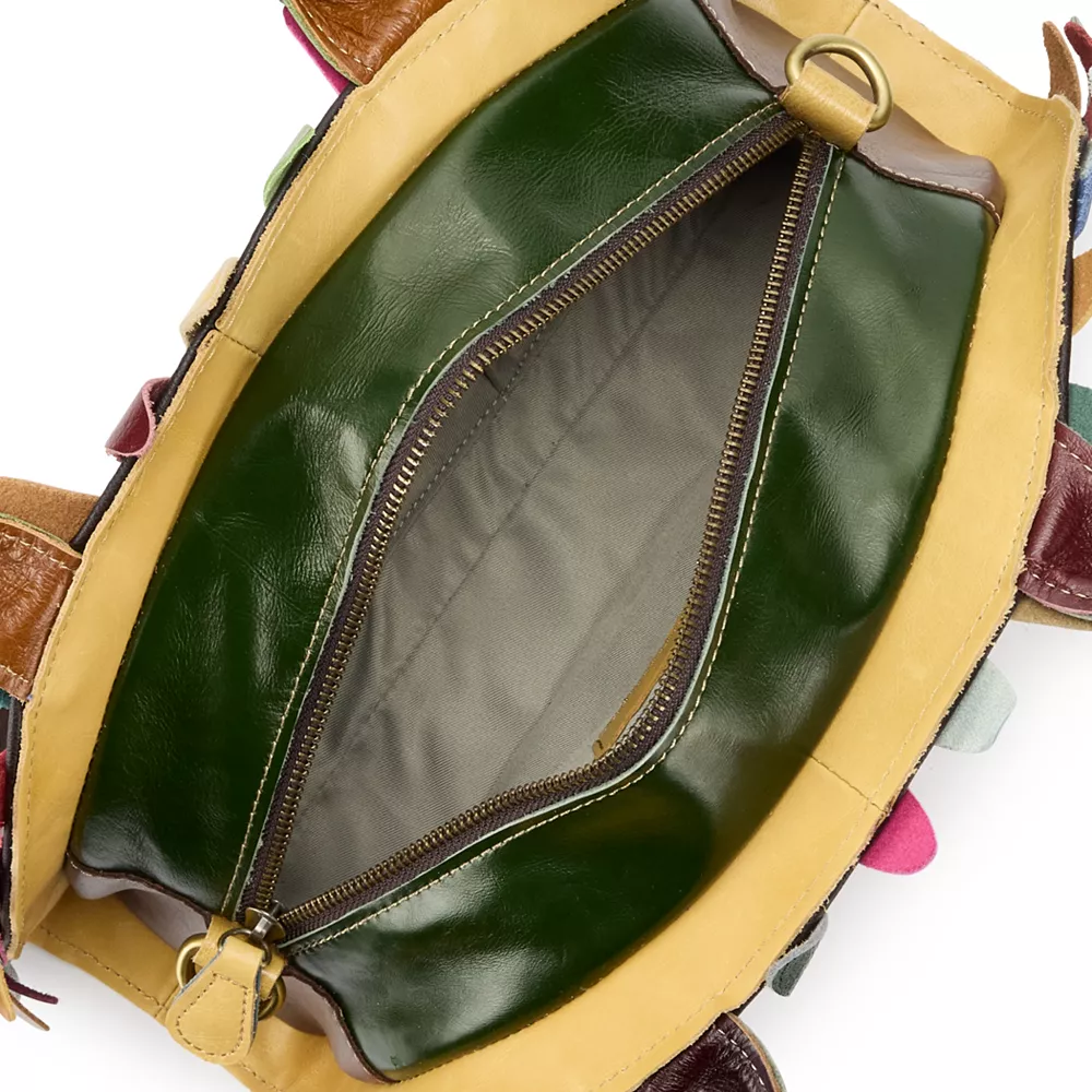 You’ll love the colorful look of this AmeriLeather Fan Leaves leather shoulder bag.