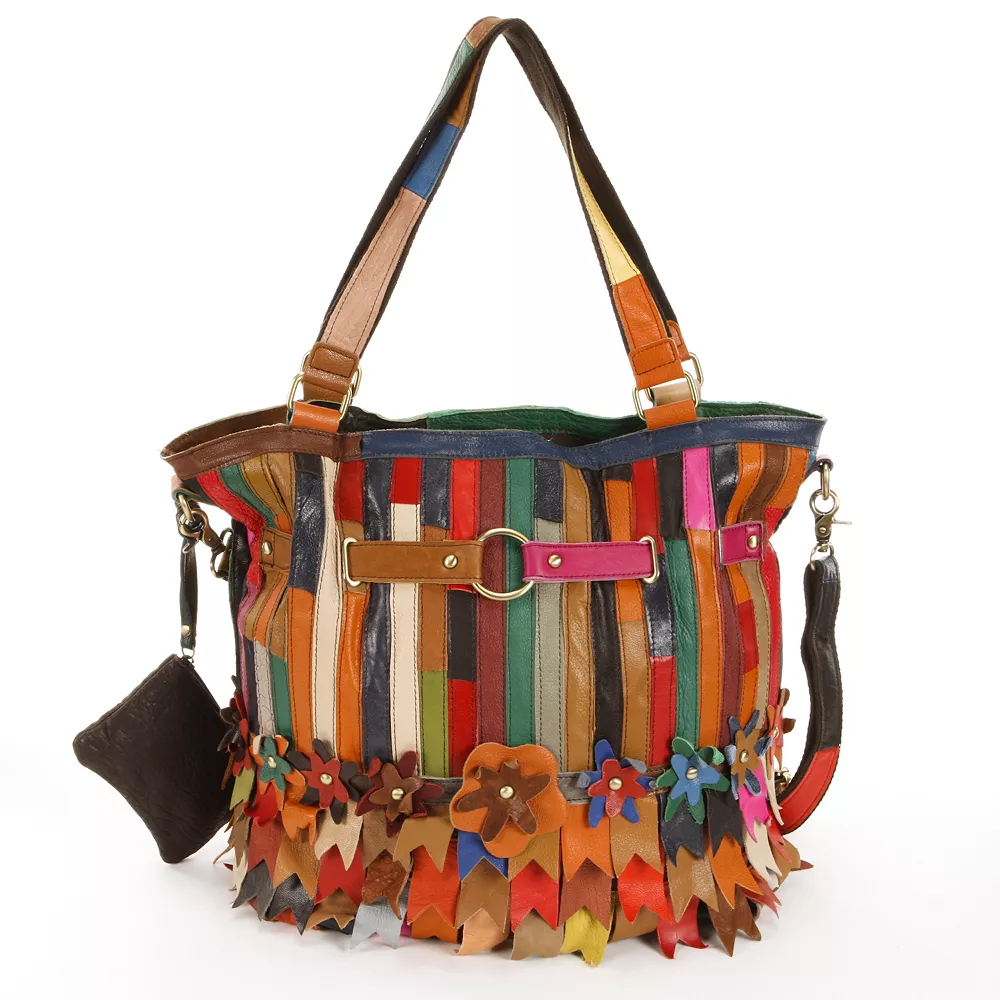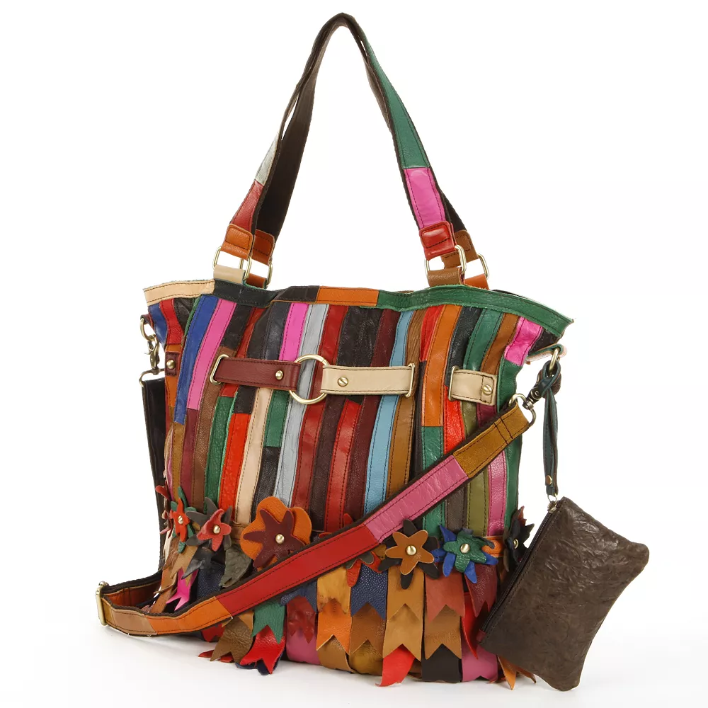 Work hard, play harder and always look fashionable carrying this AmeriLeather convertible tote. This vibrant striped and floral leather handbag keeps you organized with plenty of room. In multi.