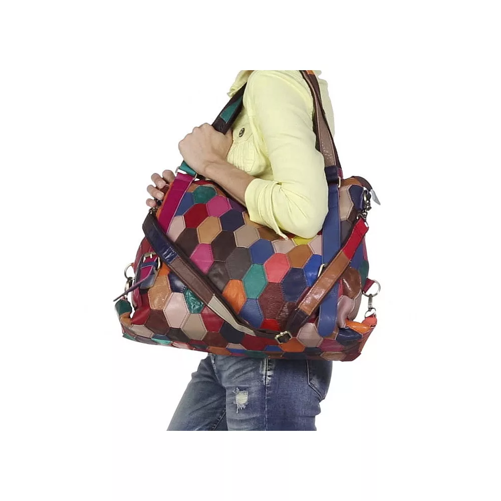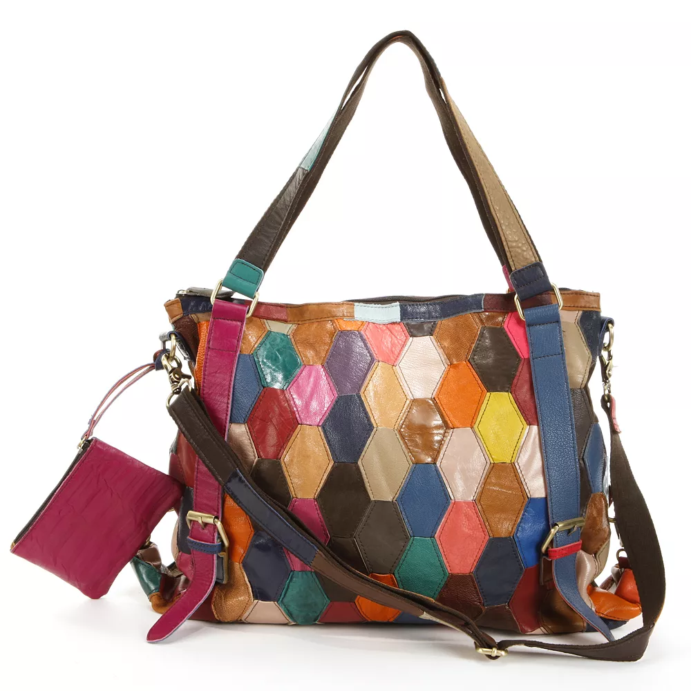 This AmeriLeather convertible shoulder bag offers a vivid colored-leather honeycomb design. Be spirited with this visionary vibrant bag, complete with distressed gold-tone hardware. In multi.