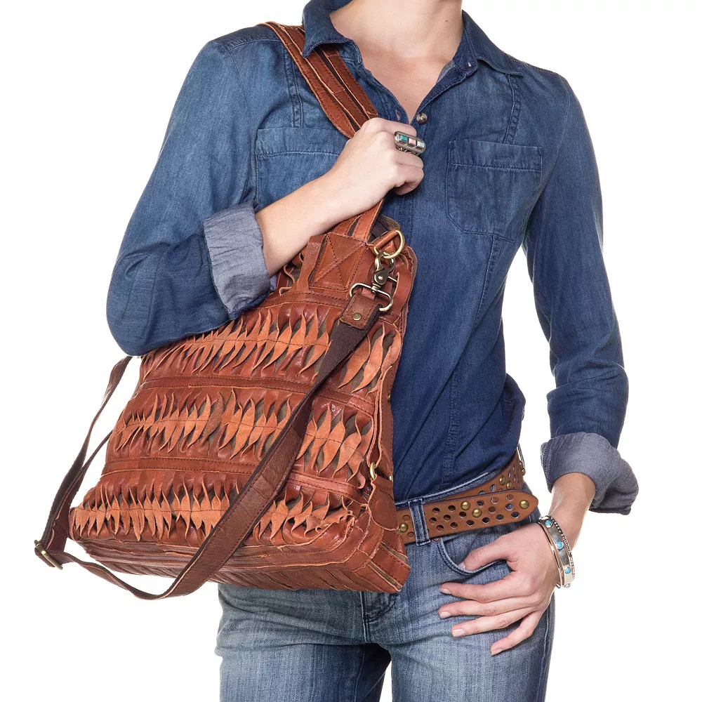 This AmeriLeather convertible shoulder bag is sure to get you noticed with the twisted accents and genuine leather construction.