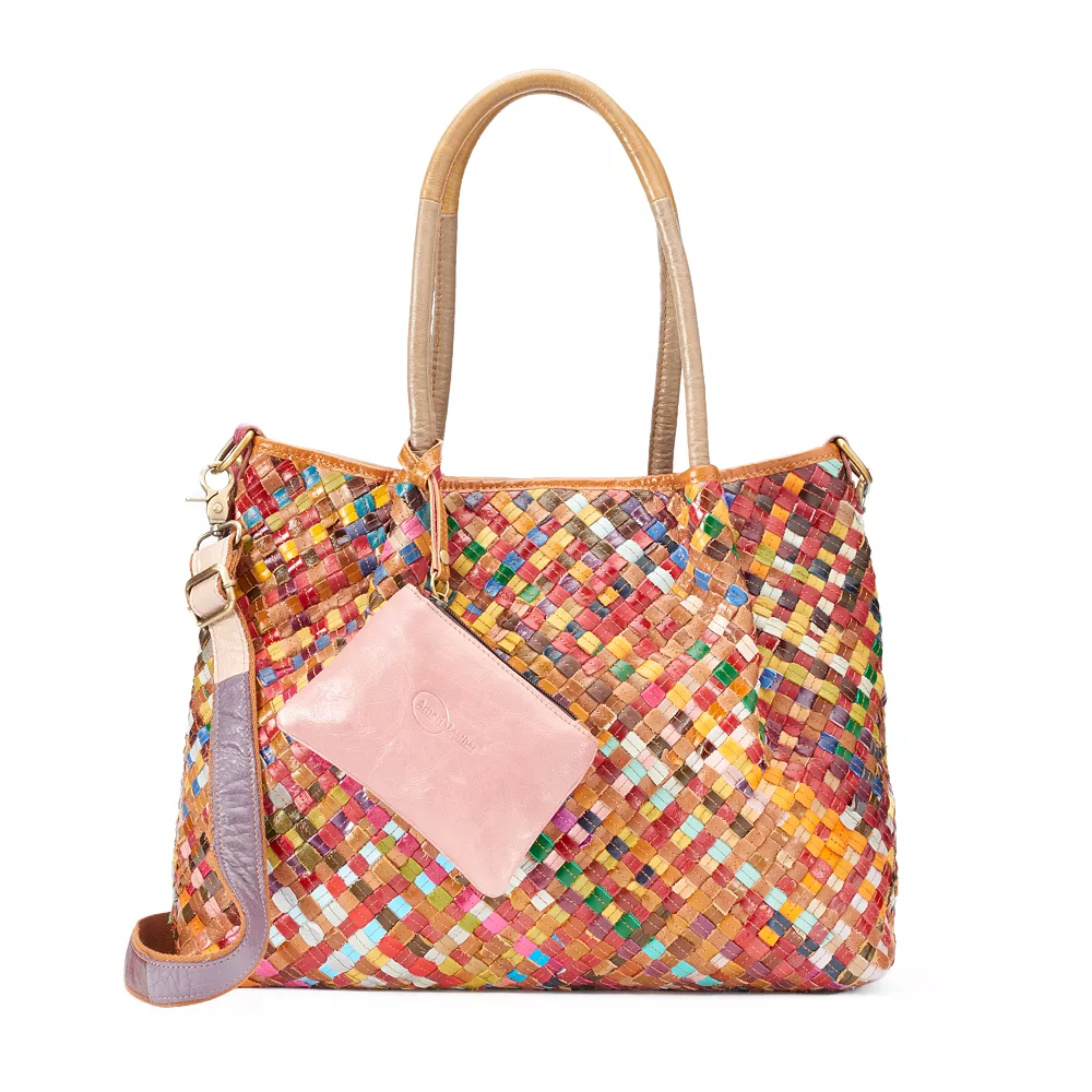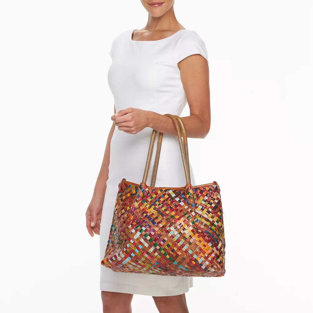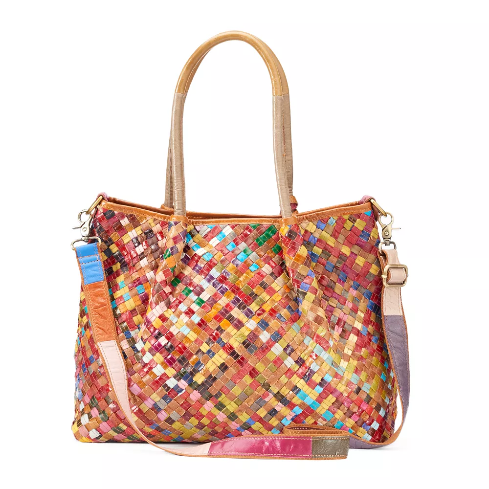 Coordinate your look with this colorful leather tote from AmeriLeather.
