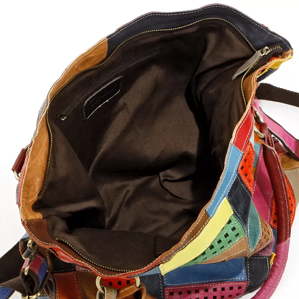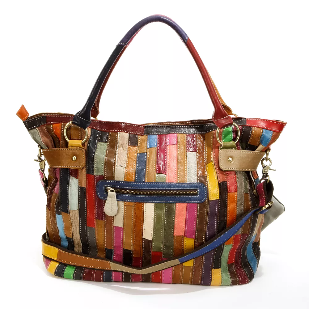 This AmeriLeather convertible tote showcases wonderful color with the perforated sections and patchwork leather pieces. Refresh your eyes with something new by accessorizing with this vibrant handbag. In multi.