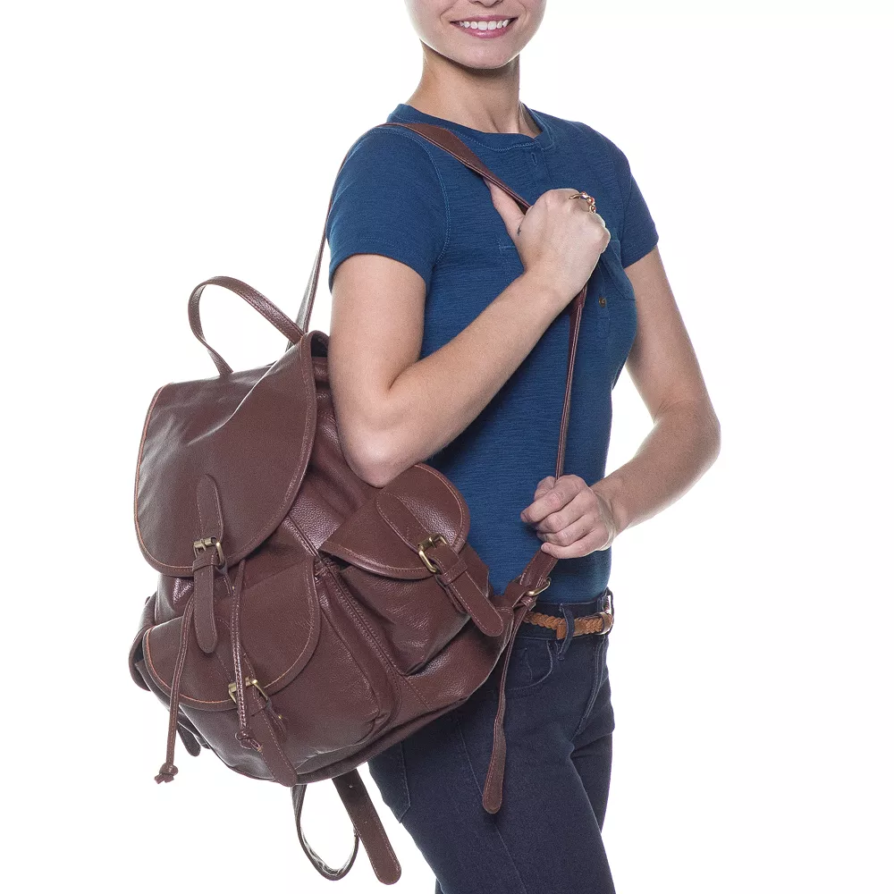 This AmeriLeather Urban Buckle Flap leather backpack is sure to get compliments for its sleek & sensible design. Its lightweight yet roomy, making it the perfect bag for carrying all of your essentials.