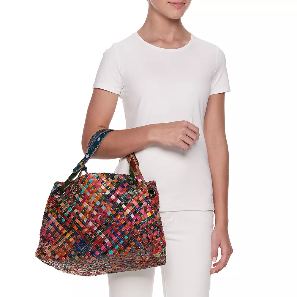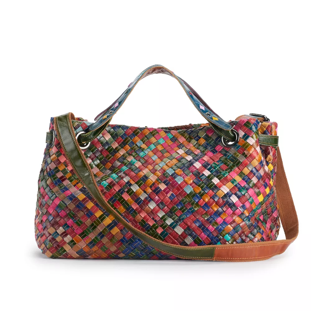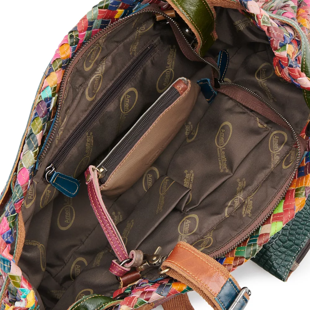 Go out and about with this women’s AmeriLeather Cybil Woven Satchel.